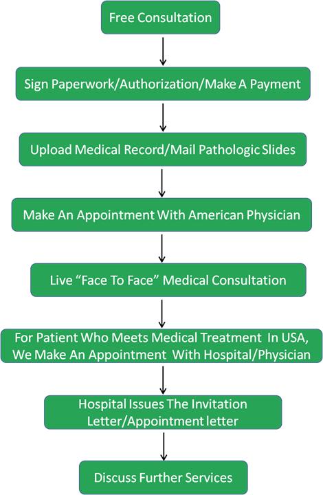 1, Free consultation Our medical advisers will understand the basic condition of patients and introduce medical treatment in USA, including hospitals, doctors and process, etc.